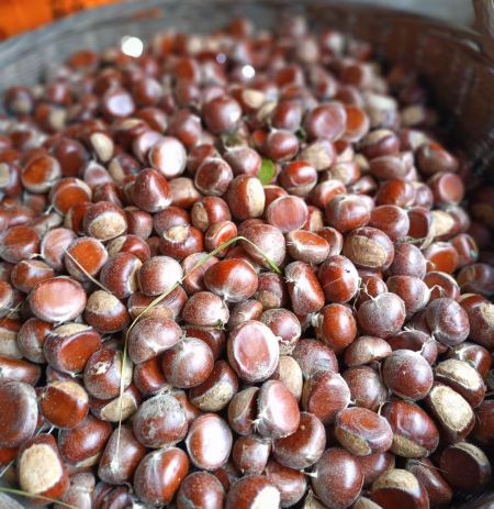 林子里靜悄悄的,只有我們的笑聲和腳下“沙沙”的落葉聲。風(fēng)穿過栗樹枝椏,把毛栗殼的獨(dú)特氣味送過來,混著泥土的腥氣和落葉的腐香,聞著就讓人踏實(shí)。布兜漸漸沉了,毛栗在里面相互碰撞,發(fā)出“咕嚕嚕”的輕響,每多一顆,心里的歡喜就多一分。偶爾忍不住捏起一顆,用指甲摳開紅褐色的硬殼,露出嫩黃的果肉,丟進(jìn)嘴里一嚼,清甜脆爽的滋味在舌尖散開,那是大山最直接的獎(jiǎng)賞,比任何零嘴都解饞。